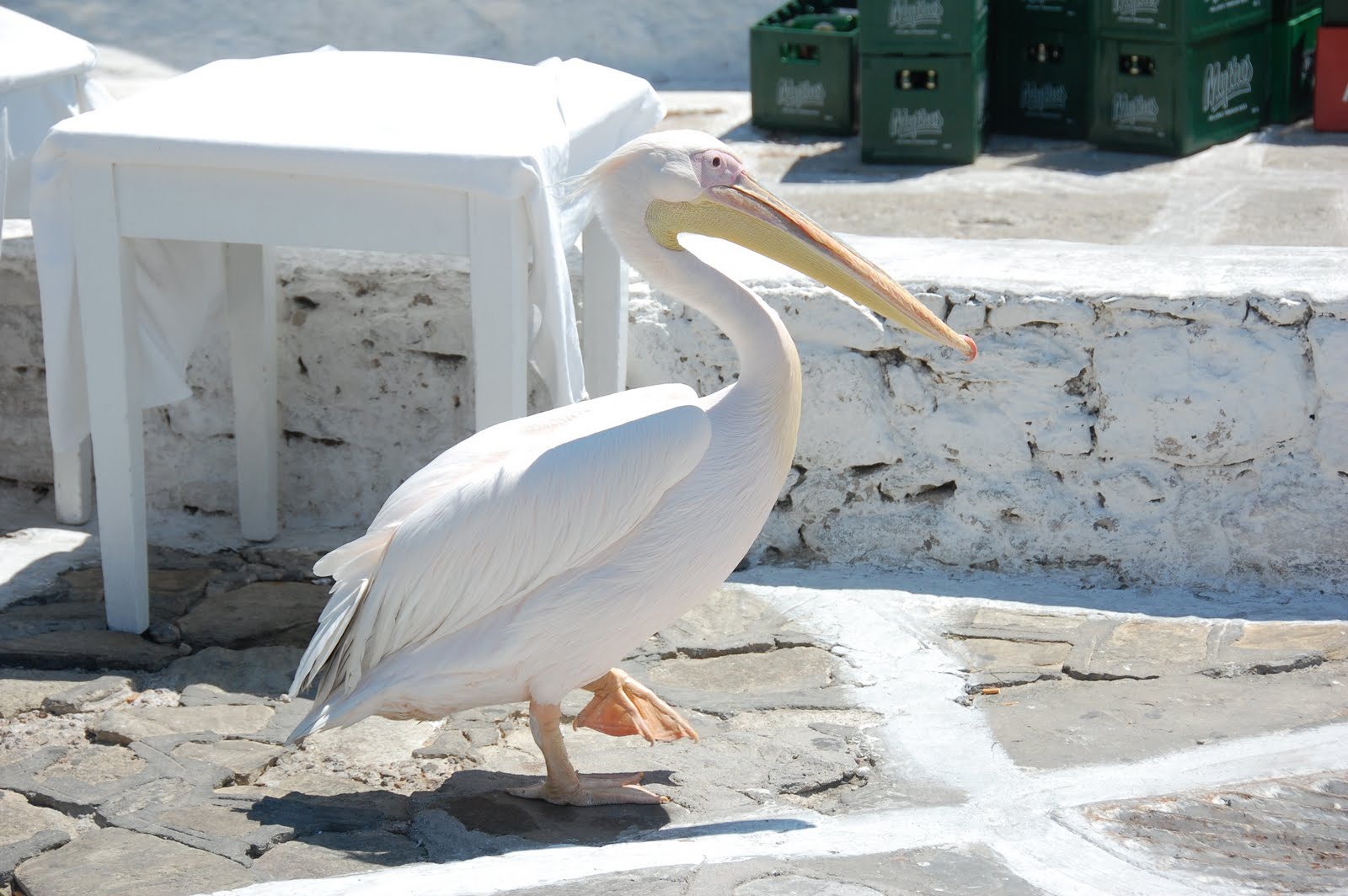 Petros II the mascot of the island. Right before this picture was taken a crazy Aussie grabbed the neck of the bird out of nowhere. I don't think the bird knew what hit him, but after being let go he just continued on his merry way.